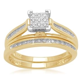 10K Yellow Gold Diamond Square Center Bridal Ring Set (1/7 cttw, I-J Color, I2-I3 Clarity), Size 6: Jewelry