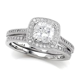 1.69 cttw Zoe R(tm) Platinum Plated Silver Micro Pave Hand Set Cubic Zirconia (CZ) Cushion Cut Center Wedding Set Size 5: Zoe R: Jewelry