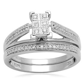 1/4ct Diamond Bridal Set in Sterling Silver: Jewelry