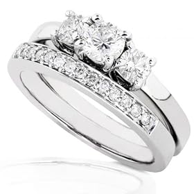 1 Ct Round Diamond Three Stone Engagement Ring Set SI3: Fascinating Diamonds: Jewelry
