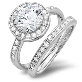 2.50 CT Halo Sterling Silver Ladies Round Cubic Zirconia CZ Wedding Bridal Engagement Ring with Matching Band Set (Available in size 6, 7, 8): Jewelry