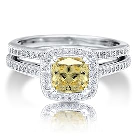 Sterling Silver 925 Cushion Canary Cubic Zirconia 2pc Bridal Ring Set - Nickel Free Engagement Wedding Ring Set Size 8: Jewelry
