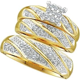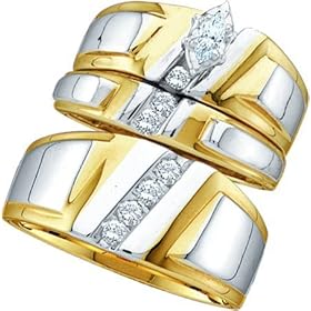 Size - 9 - 10k Yellow and White 2 Two Tone Gold Mens and Ladies Couple His & Hers Trio 3 Three Ring Bridal Matching Engagement Wedding Ring Band Set - Round Diamonds - Princess Shape Center Setting (.09 cttw) - SEE "PRODUCT DESCRIPTION" TO CHOOSE BOTH SIZES: Jewelry