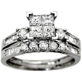 Ladies 14k White Gold 2 Ct Princess Cut Diamond Wedding Engagement Bridal Ring Set: Rodeo Jewels Co: Jewelry