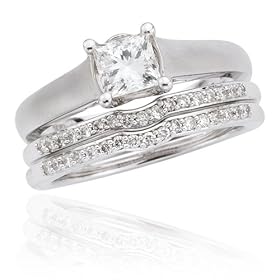 1 1/10 Carat TW Princess Diamond 3-Ring Bridal Set in 14k White Gold - Size 10: Diamond-Me: Jewelry