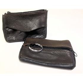Brown Leather Coin Purse with Key Ring: Office Products