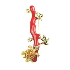 Yellow Austrian Rhinestone Turtle & Starfish Sea Star Gold-Tone Brooch Pin: Jewelry