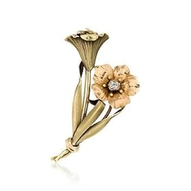 C. 1950 Vintage .40 Carat Diamond Flower Pin In 14kt Two-Tone Gold: Jewelry