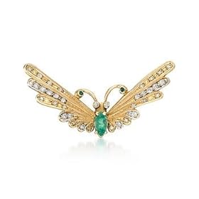 C. 1970 Vintage .96ct t.w. Emerald, .70ct t.w. Diamond Butterfly Pin: Jewelry
