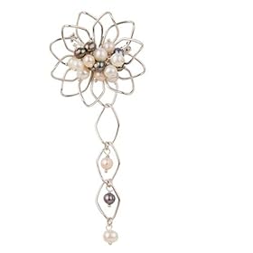 Snow White Pearl Style Floral Brooch (Silver Tone): Jewelry