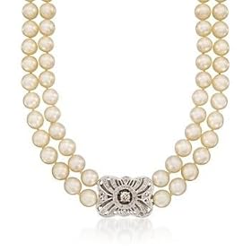 C. 1960 Vintage Cultured Pearl, .95ct t.w. Diamond Necklace. 21": Jewelry
