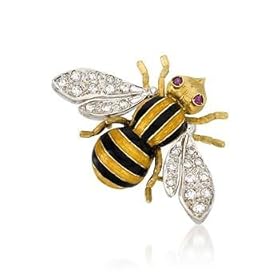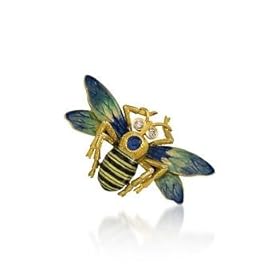 C. 1950 Vintage Enamel, .20ct t.w. Sapphire Bee Pin, Diamonds In Gold: Jewelry