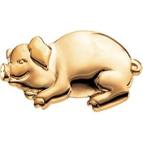 14K Yellow Gold 17.25X29.25 mm Bonnie The Pig Brooch: CleverEve: Jewelry