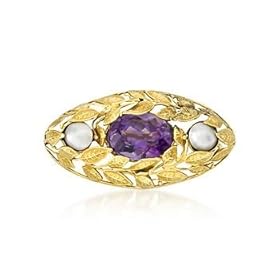 C. 1970 Vintage 7.95ct Amethyst, 6mm Cultured Pearl Pin In Gold: Jewelry