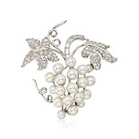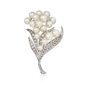14K White Gold Akoya Cultured Pearl and Diamond Brooch: Jewelry