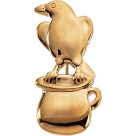 14K Yellow Gold 31.50X15.00 mm The Crow And The Pitcher Brooch: CleverEve: Jewelry