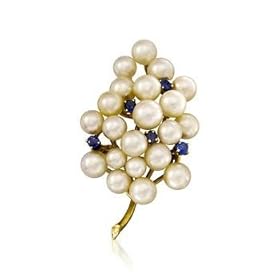 C. 1970 Vintage 5-8.5mm Cultured Pearl, 1.25ct t.w. Sapphire Pin. Pin: Jewelry