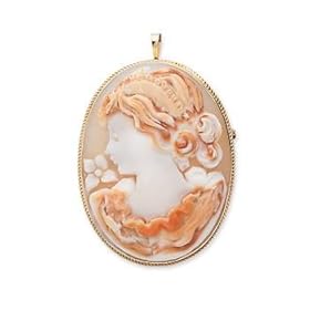 C. 1970 Vintage Shell Cameo Brooch Pendant In 14kt Yellow Gold: Jewelry