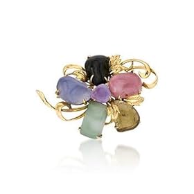 C. 1970 Vintage 86.50ct t.w. Multi-Stone Floral Pin In 10kt Yellow Gold: Jewelry
