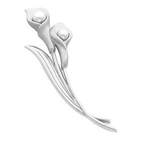 14K White Gold Akoya Pearl Calla Lily Brooch: Jewelry