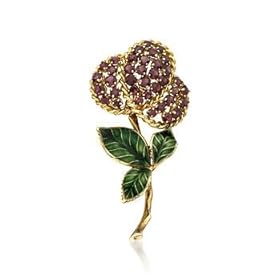 C. 1960 Vintage 6.50ct t.w. Garnet Floral Pin, Green Enamel In Gold: Jewelry