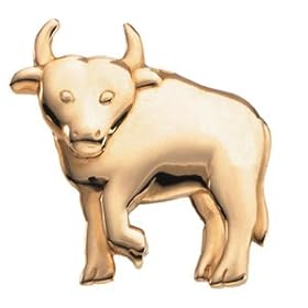 14K Yellow Gold 24.75X24.75 mm The Playful Bull Brooch: CleverEve: Jewelry