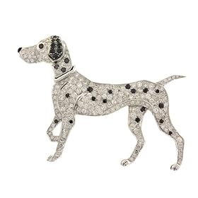 2.52 Ct Vs White & Black Diamond Dalmatian Dog Brooch: Jewelry