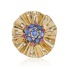 C. 1960 Vintage 7.70ct t.w. Multi-Gem, .55ct t.w. Diamond Pin In Gold: Jewelry