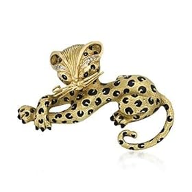 C.1980 Vintage Hammerman Brothers Jaguar Pin, Diamond Accents In Gold: Jewelry