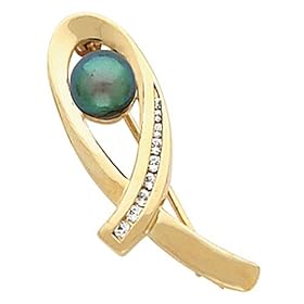 18K Yellow Gold Black Akoya Pearl and Diamond Brooch: Jewelry