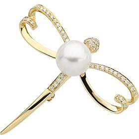 18K Yellow Gold Paspaley South Sea Cultured Pearl and Diamond Dragonfly Brooch: Jewelry
