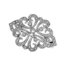 Vintage Crystal Silver Bridal Brooch Pin Hair Clip: Jewelry