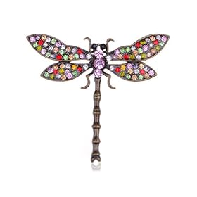 Vintage Inspired Reproduced Multi Color Crystal Rhinestone Dragonfly Brooch Pin: Jewelry