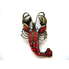 Vintage Repro Golden Ruby Crystal Rhinestone Lobster Fashion Jeewelry Pin Brooch: Jewelry
