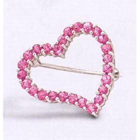 14KT White Gold Heart Shape Pink Sapphire Pin: Jewelry