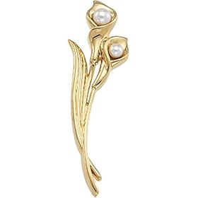 14K Yellow Gold Akoya Cultured Pearl Callas Lily Brooch: Jewelry