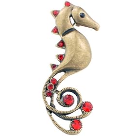 Vintage Style Ruby Austrian Crystal Seahorse Red Pin Brooch: Jewelry