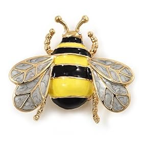 Yellow/Black Enamel Bee Brooch In Gold Plated Metal - 4cm Length: Jewelry
