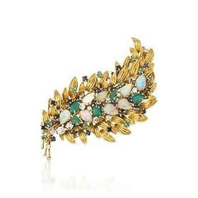 C. 1960 Vintage 7.55ct t.w. Multi-Gem, 1.50ct t.w. Diamond Pin, Opals. Pin: Jewelry