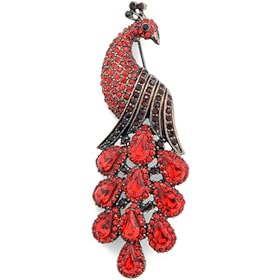 Vintage style Ruby Red Owl Austrian Crystal Bird Pin Brooch: Jewelry