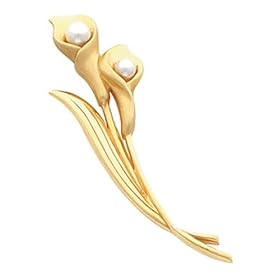 14K Yellow Gold Akoya Pearl Calla Lily Brooch: Jewelry