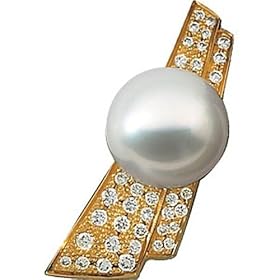 18K Yellow Gold Paspaley South Sea Cultured Fine Round Pearl and Diamond Brooch: Jewelry