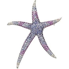 14K White Gold Multi-Gemstone and Diamond Starfish Brooch: Jewelry
