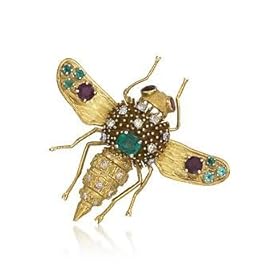 C. 1960 Vintage .75ct t.w. Diamond, Multi-Gem Insect Pin In Gold: Jewelry