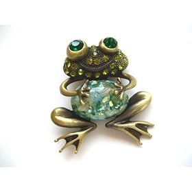 Wintage-like Emerald Crystal Rhinestone Happy Frog Smile Big Belly Pin Brooch: Jewelry