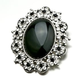 Vintage Black Swarovski Crystal Oval Flower Brooch: Pugster: Jewelry