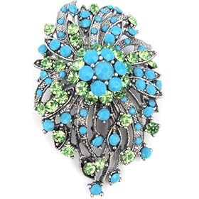 Vintage Style Turquoise and Peridot Green Crystal 3" Flower Floral Pendant / Brooch: Jewelry
