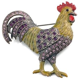 Vintage Style Amethyst Rooster Austrian Crystal Enamel Animal Pin Brooch: Jewelry