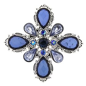 Vintage Blue Rhinestone Flower Brooch Gifts: Pugster: Jewelry