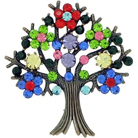 Vintage Style Tree-in-Full-Bloom Austrian Crystal Brooch Pins: Jewelry